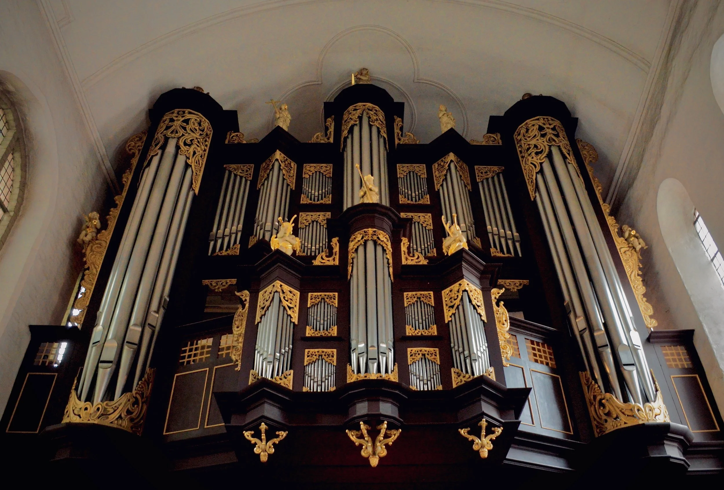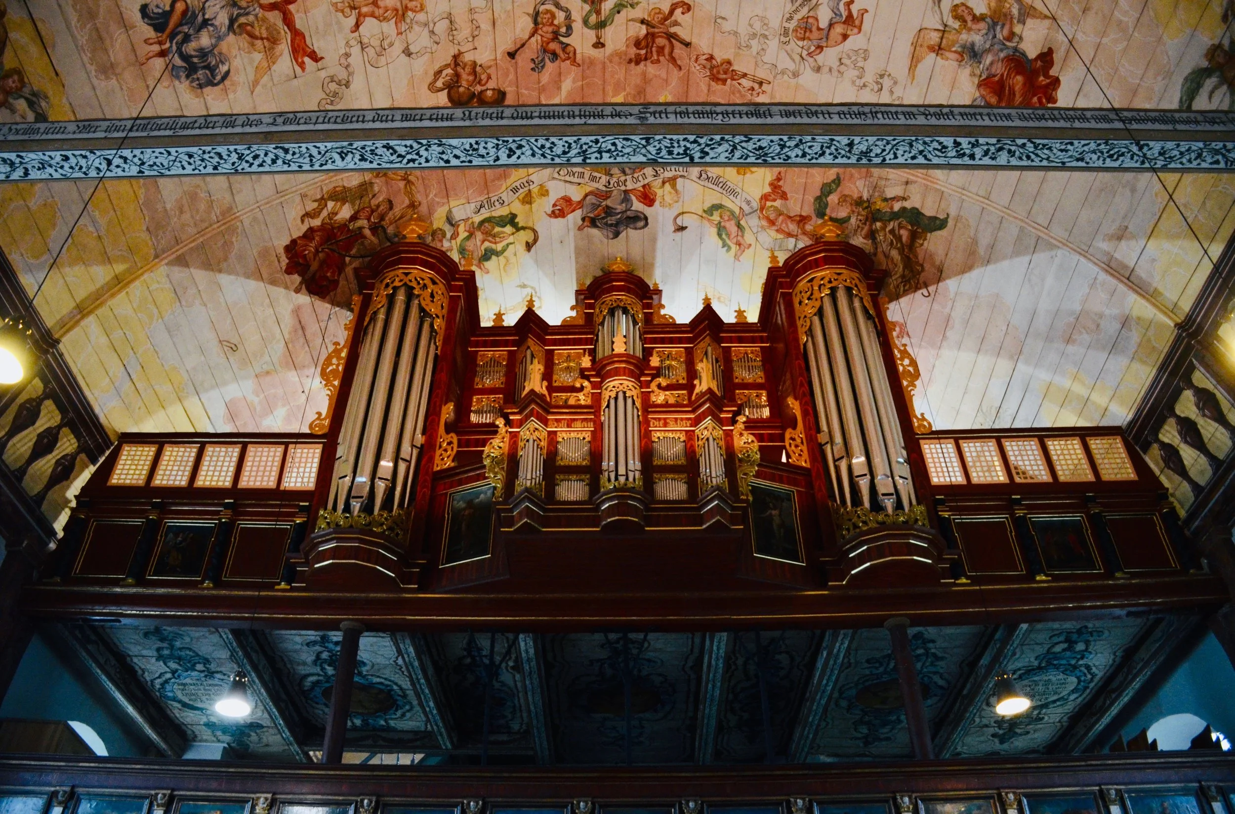 From there, we headed to Neuenfelde to visit Schnitger’s home parish at St. Pankratius. After finding Schnitger’s grave in the church; the church organist, Hilger Kespohl, gave another fantastic demonstration — the Toccata in F of Buxtehude. The organ was recently restored in 2015–16 by Wegscheider of Dresden. The instrument was in fantastic shape —a lot of fun and full of fire! The façade is interesting as it is literally covered in tin foil since the pipes themselves are made of lead (word of the day: das blei). From downstairs, it is quite convincing.