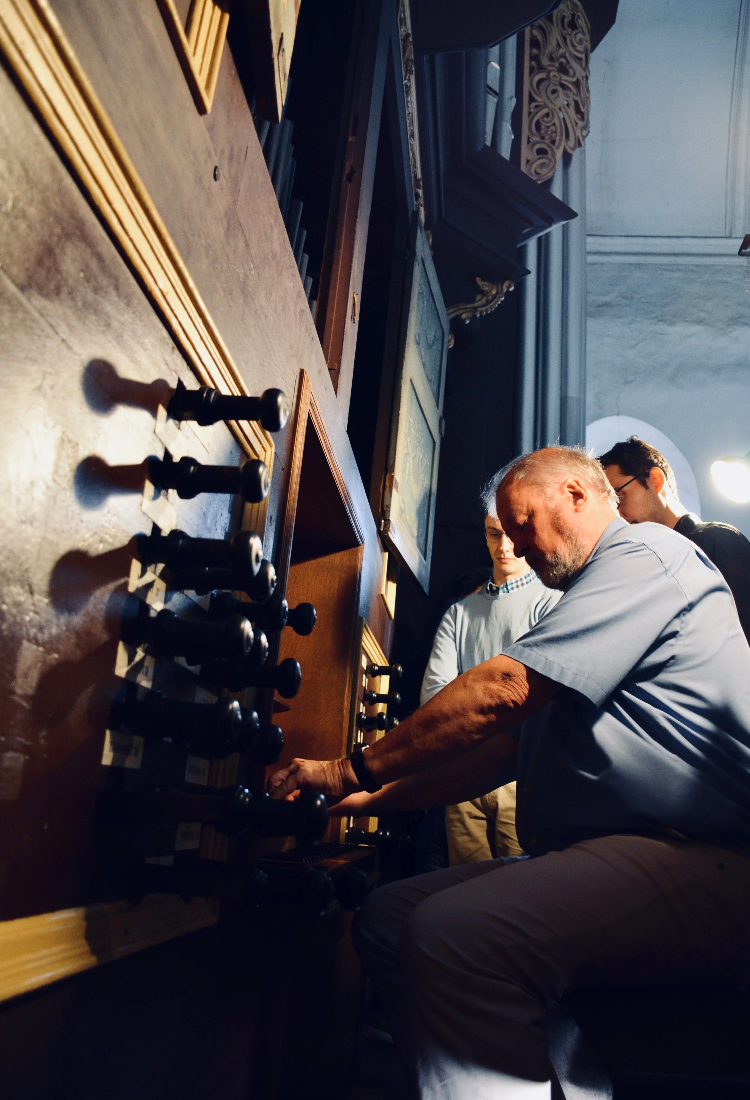 Amidst a lunch of Schnit…zel, three of us alternated 30-minute practice times as we had a masterclass that afternoon back at St. Cosmæ! Jennifer started the masterclass with Buxtehude’s D major præludium. This was an interesting opportunity for us to learn about the influence of opera on organ music in Northern Germany. I followed with (most of) Nun freut euch…of Buxtehude. Holy smokes, that action is no joke. I loved the experience so much because of the beautiful sounds, smells, and sights of the organ and church (yes, smells), but the Hauptwerk spring chest is a beast. Perhaps wrist weights are the answer!